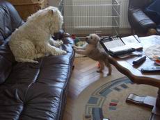 We have never regretted this statement and, from today’s point of view, can only confirm it. The Irish Soft Coated Wheaten Terrier is the ideal family dog! From when he was a puppy, one thing was true about our ”Olli”:
